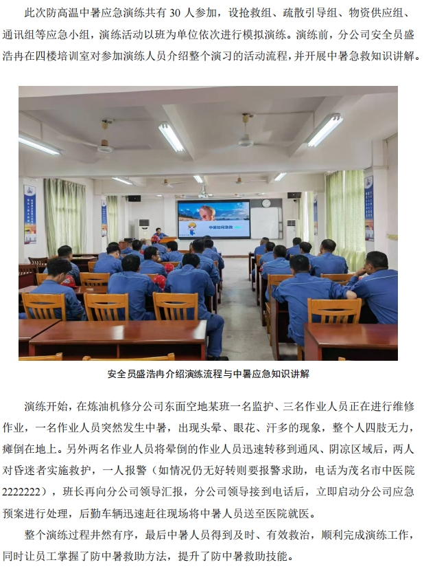 煉油機(jī)修開(kāi)展防高溫中暑應(yīng)急演練