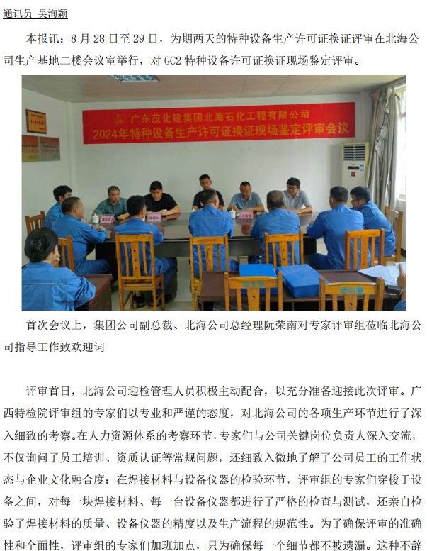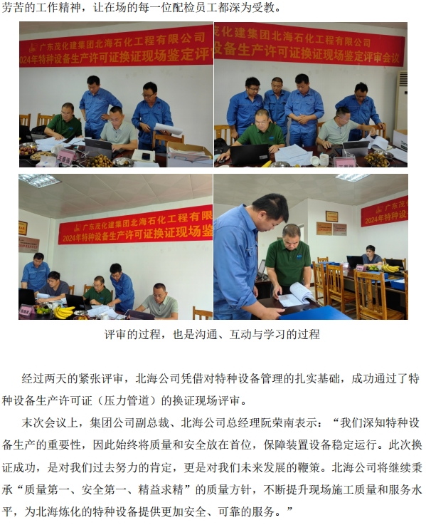 北海公司通過特種設備生產許可證(壓力管道)換證現場評審