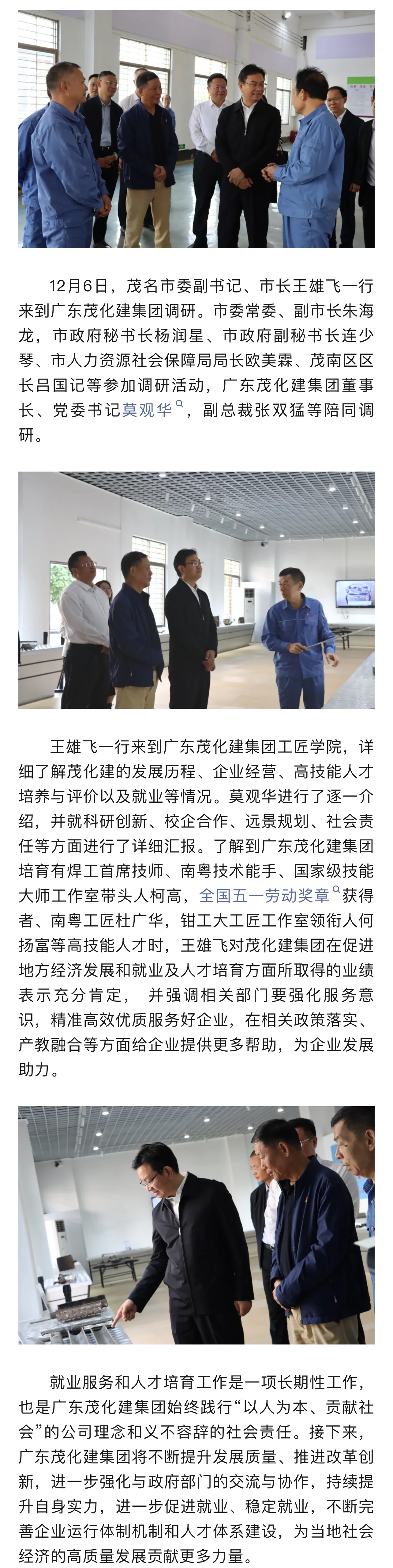 茂名市委副書記、市長(zhǎng)王雄飛到廣東茂化建集團(tuán)視察指導(dǎo)工作