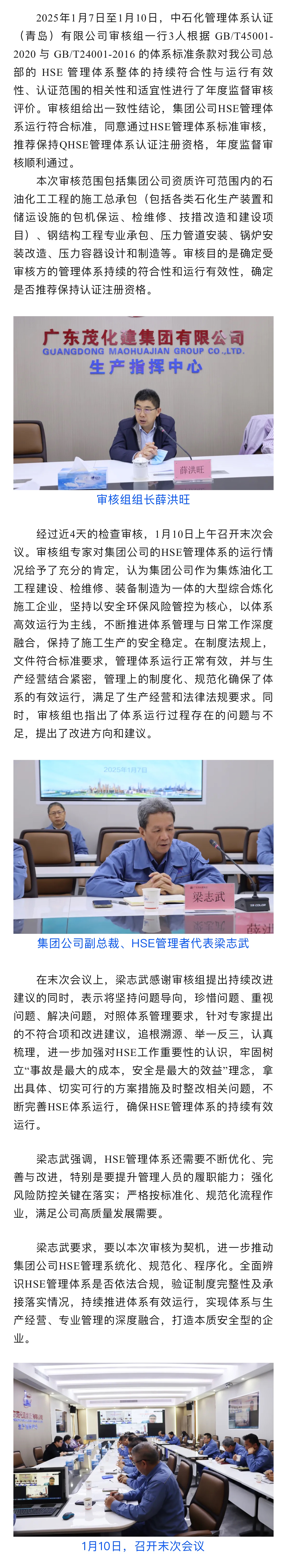 集團(tuán)公司順利通過(guò)HSE管理體系年度監(jiān)督審核