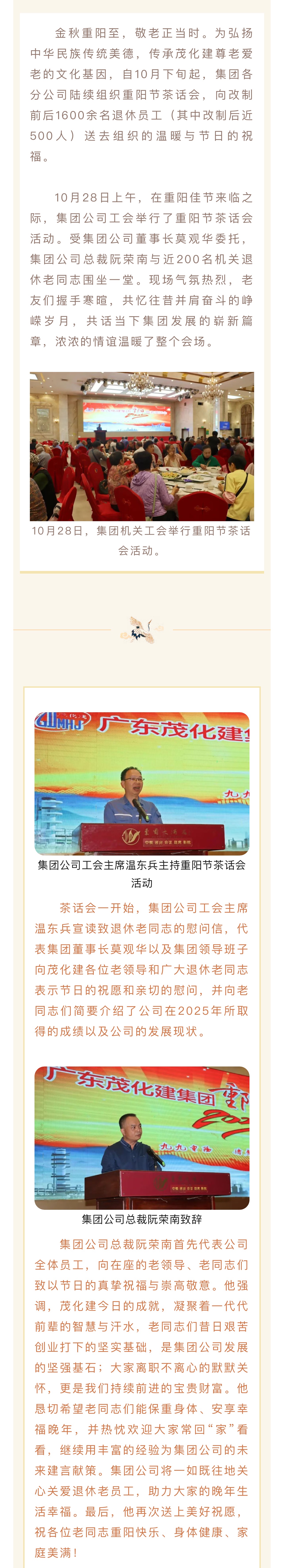 情暖重陽,共話發(fā)展—— 廣東茂化建集團(tuán)開展2025年重陽節(jié)茶話會活動(dòng)