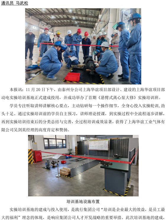 泰州分公司上海華誼項(xiàng)目部實(shí)操培訓(xùn)基地建成開班