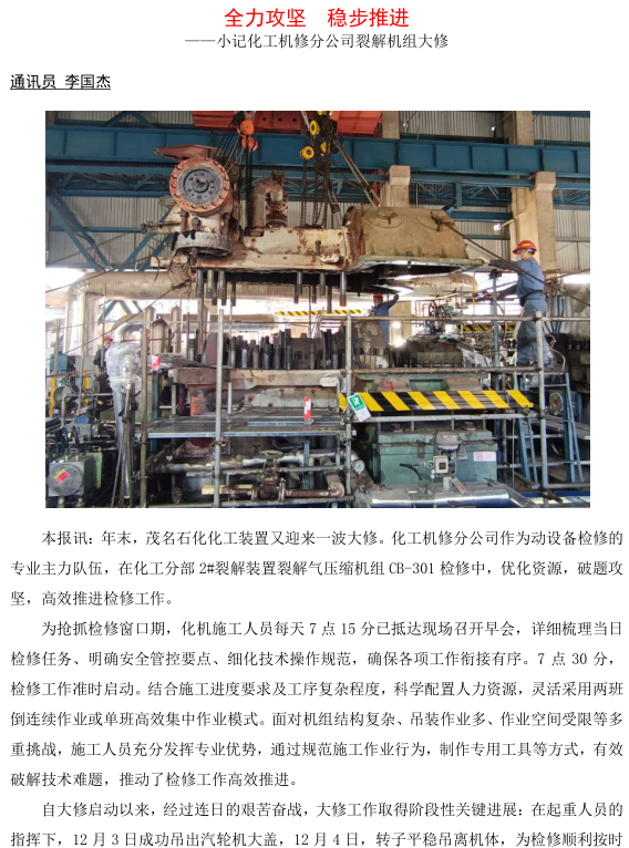 記化工機(jī)修分公司裂解機(jī)組大修