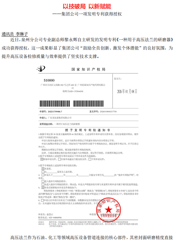 以技破局 以新賦能——集團公司一項發(fā)明專利獲得授權(quán)